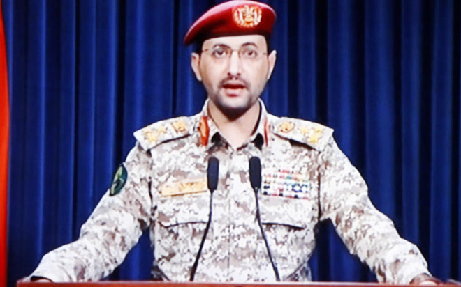 ▲也门胡塞武装发言人叶海亚·萨雷亚 据视觉中国