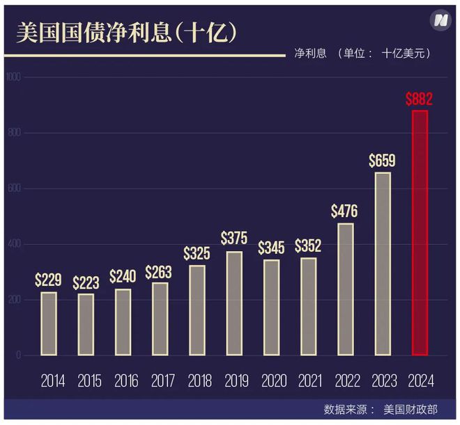 从经济角度来说,美国高达36万亿美元的债务是悬在美国总统头上的炸弹。特朗普逼迫鲍威尔降息(不降息就下台)的原因之一,就是他不想这枚"炸弹"在他的任内爆炸。