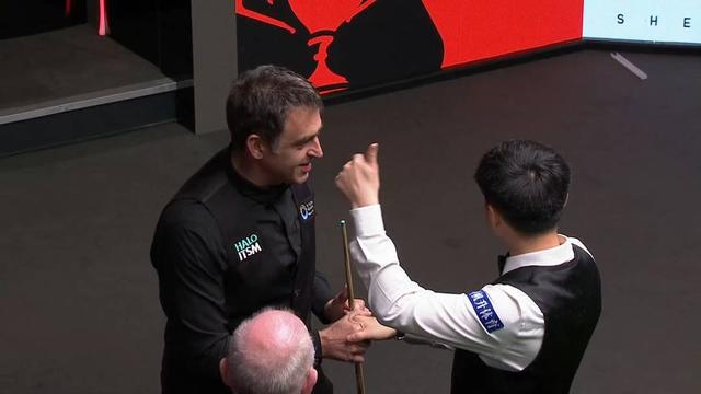 赵心童和奥沙利文在比赛中握手交谈 图/世界斯诺克巡回赛官方微博