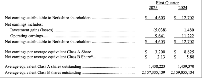 伯克希尔2025年第一季度净利润为46.03亿美元,同比减少64%