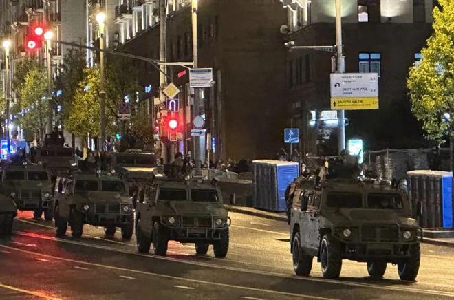 当地时间4月29日22时,俄罗斯纪念卫国战争胜利80周年阅兵式的首次彩排在莫斯科开始 图:央视军事