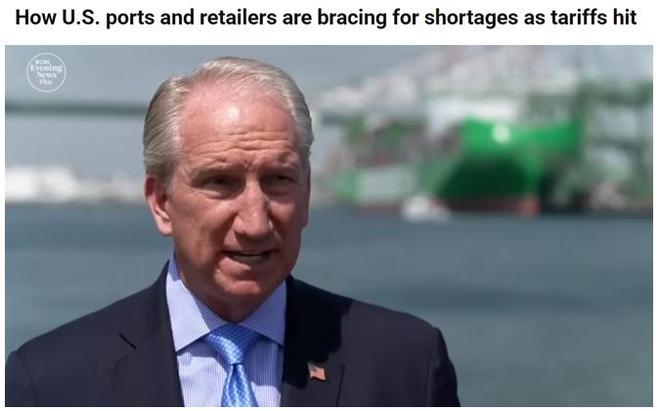 塞罗卡:"未来两周内,我们的进口业务将下降大约三分之一,随后的一周降幅可能高达40%。大多数美国进口商表示,他们已经停止从中国发货,因为他们根本无法接受商品成本翻两倍半的局面。"