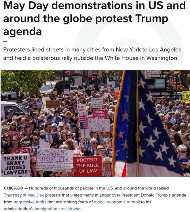 抗议民众表示,美国政府推出的所谓"对等关税"政策实施仅一个月,便给美国社会带来巨大冲击。