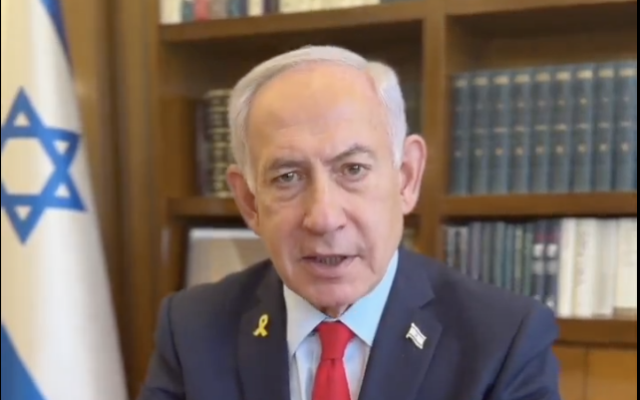 以色列总理内塔尼亚胡发表讲话(视频截图)