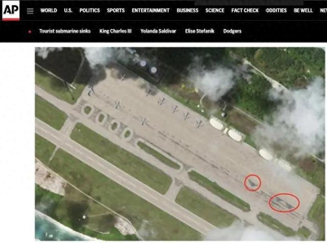卫星图片显示,多架美军B-2(红圈处)已进驻迭戈加西亚基地 美联社