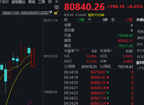 值得注意的是,印度SENSEX30指数低开0.86%报79948.8点。成分股中,印度工业银行低开3.17%,马衡达信息技术下跌2.36%,玛鲁蒂铃木公司跌2.36%。但此后印度SENSEX30指数迅速翻红,截至发稿上涨0.25%
