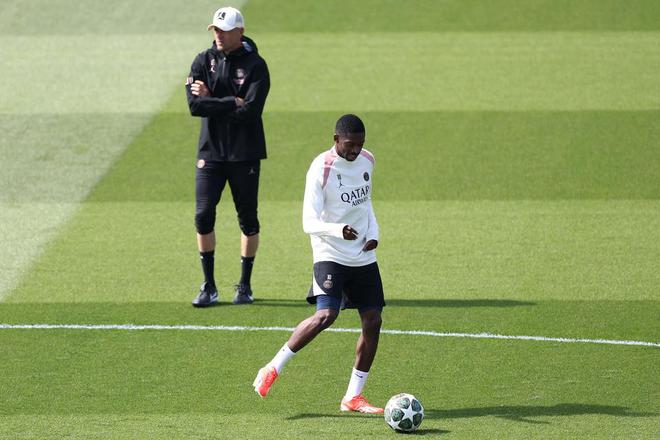 5月6日,巴黎圣日耳曼队球员登贝莱在训练中 图/新华社