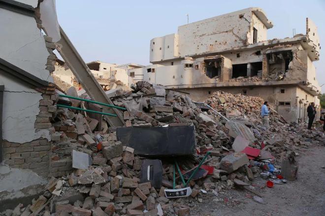5月7日在巴基斯坦东部旁遮普省巴哈瓦尔布尔地区拍摄的遭印度导弹破坏的房屋(图/新华社发)