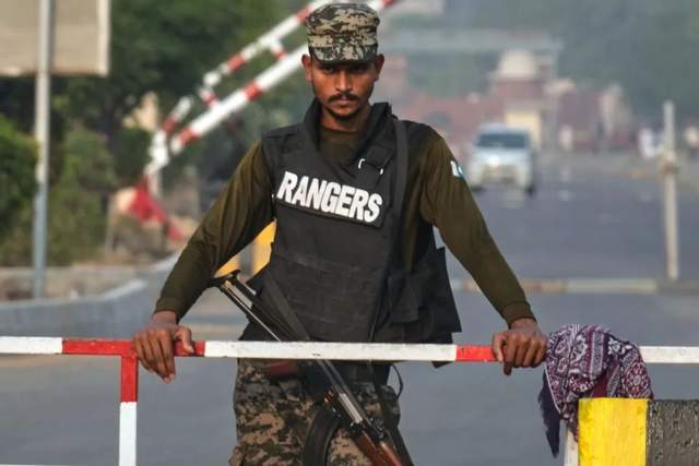 4月30日,巴基斯坦拉合尔市,在瓦噶边境口岸执勤的巴基斯坦人 图/视觉中国