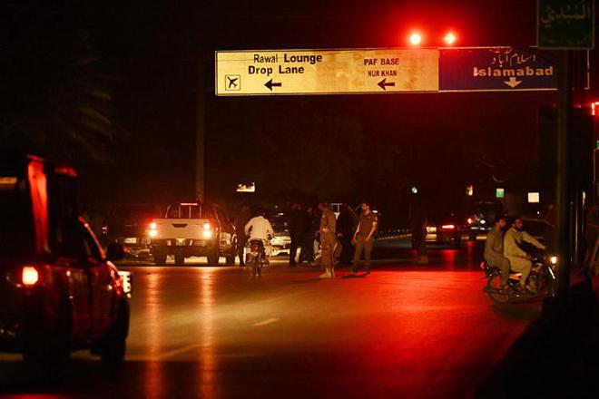 5月10日,警察在巴基斯坦拉瓦尔品第的努尔·汗空军基地附近检查来往车辆。 新华社 图