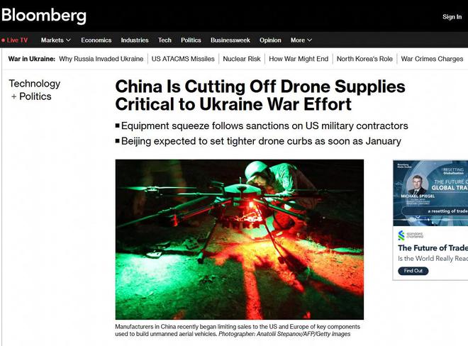美媒:中国正切断无人机供应 或对乌克兰战场造成影响