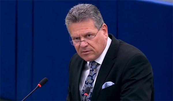 图为欧盟贸易专员谢夫乔维奇(视频截图)
