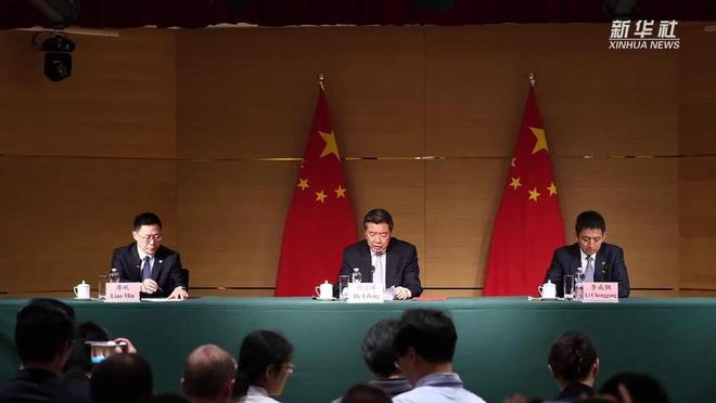 中美经贸中方牵头人、国务院副总理何立峰出席新闻发布会(视频截图/新华社)