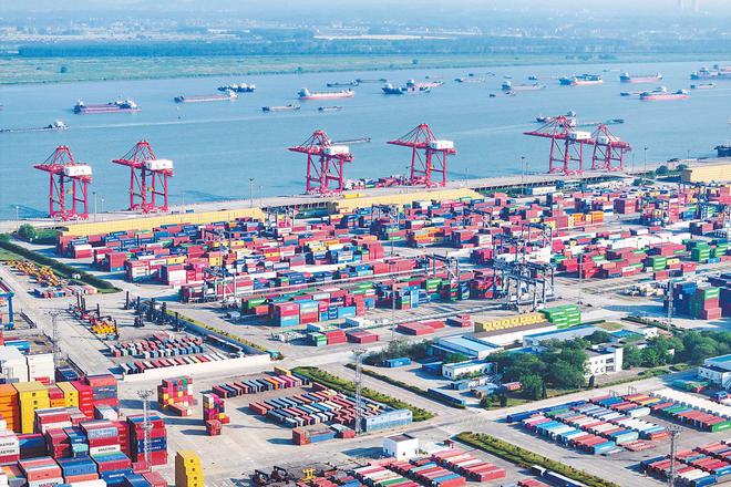 中美日内瓦经贸高层会谈成果鼓舞世界多方,图为12日南京港码头繁忙景象(图/视觉中国)