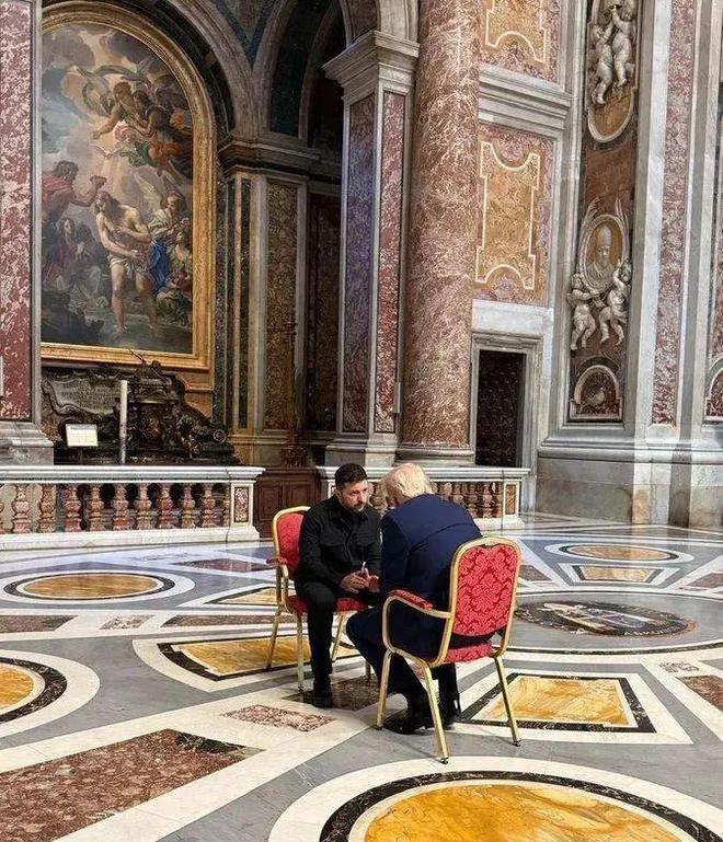 泽连斯基(左)、特朗普在教皇葬礼上见面
