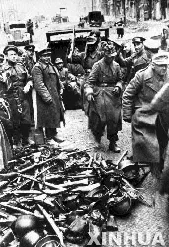图为柏林的德军残部向苏联红军缴械投降 图:新华社