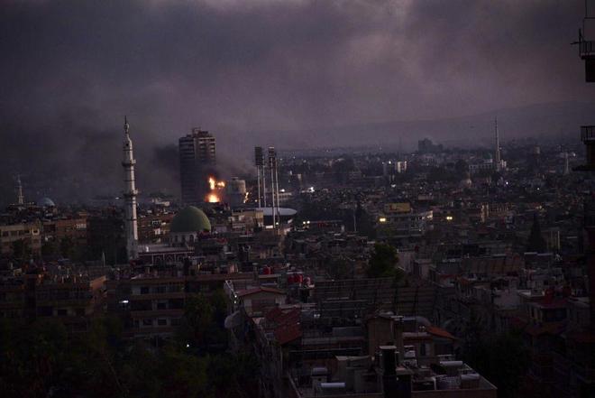 12月8日在叙利亚首都大马士革拍摄的爆炸后的浓烟