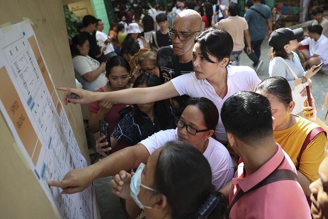当地时间2025年5月12日,菲律宾奎松市,选民在投票站的公告栏上查找自己的名字,以便进行投票 图/视觉中国