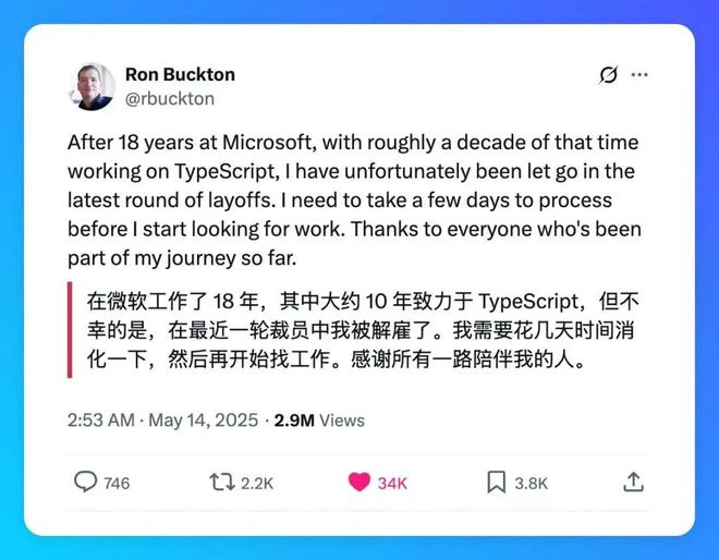另外有外媒报道称,微软最近一轮裁员的软件开发人员中,包括几位杰出的Python开发人员和一位资深的TypeScript开发人员。此外,盖布瑞拉·德·奎罗斯也在被裁员的序列之中,她是微软为初创企业提供AI服务的主管(Director of Artificial Intelligence for Microsoft for Startups)。