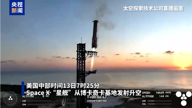 据央视此前报道,当地时间10月13日,“星舰”在得克萨斯州第五次试飞。SpaceX表示,发射塔的机械臂成功夹住了返回地面的超级重型火箭“Super Heavy”。
