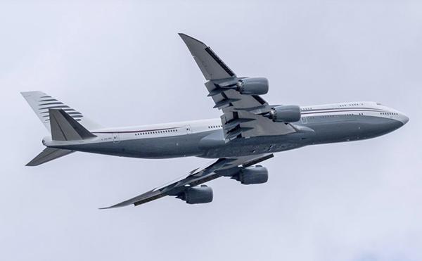 特朗普2月参观的、卡塔尔王室计划赠送给他的波音747-8型客机(资料图)