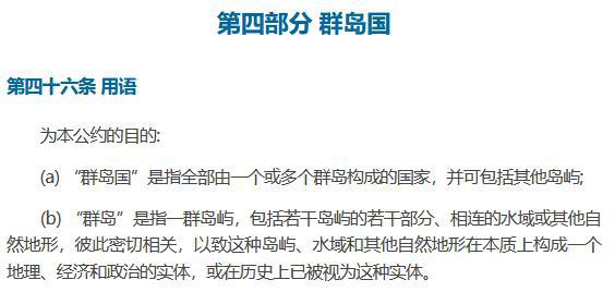 由此可知,中国南海的四大群岛也各自早已“在历史上”被视为是整体,符合《联合国海洋法公约》第46条第2款关于群岛的定义。“群岛整体论”有法可依。