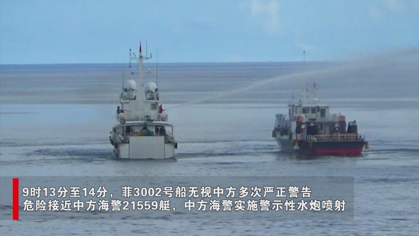 现场视频显示:菲方挑衅升级,中国海警首次在铁线礁采取水炮警示