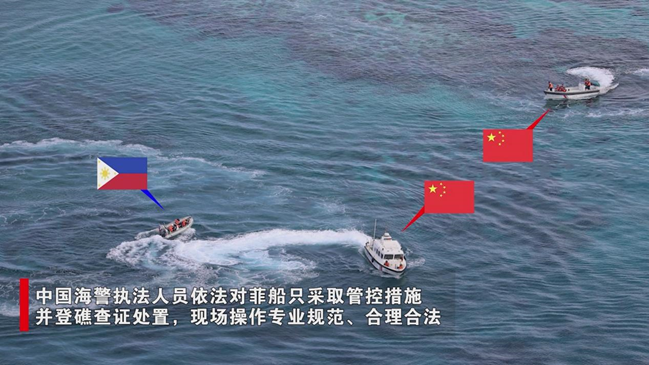 中国海警执法人员依法对菲船只采取管控措施