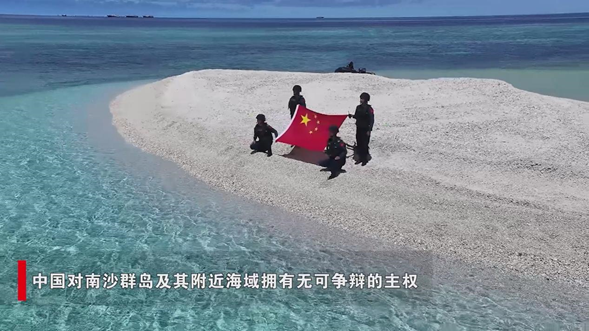 中国海警在铁线礁展示五星红旗宣示主权