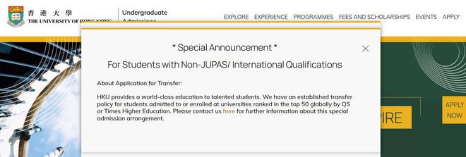 值得一提的是,香港科技大学(港科大)23日宣布,向现正就读哈佛大学的国际本科生及研究生,以及持有哈佛学位课程录取通知的学生,发出公开邀请,欢迎他们加入港科大继续学业,延续学术追求。香港大学同日也在其招生官网上新增“特别公告”,含蓄表示对于全球排名前50大学的学生安排有“转学政策”。
