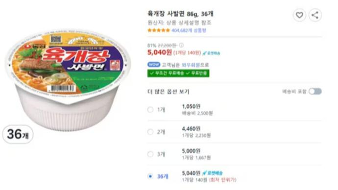 韩商家标错价,36碗牛肉泡面卖价约26.5元人民币,亏超千万