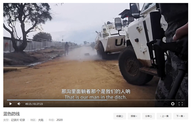 网传视频的片段来自中国首部海外维和战地纪实电影《蓝色防线》