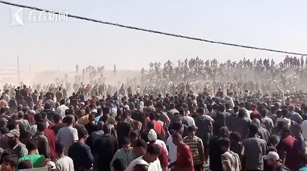 加沙数万难民在分发站疯抢食物(视频截图)