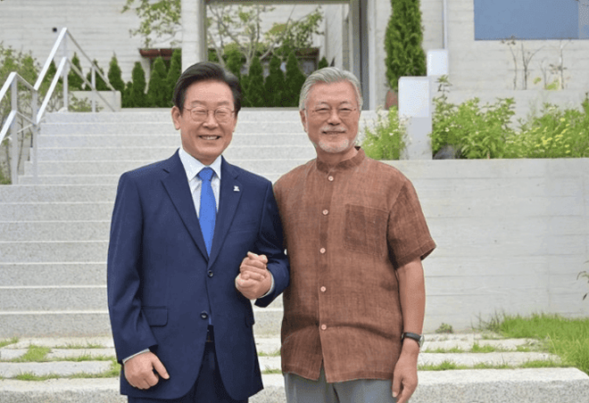 在文在寅执政尾声,李在明与文在寅会面时强调:“我将为文在寅政府的成功竭尽全力。”韩媒解读,这番话意在拉拢党内文在寅的支持者。2022年3月,李在明大选失利后表示“一切责任在我”,然而多名共同民主党议员在选后提出“文政府责任论”,其中“亲明派”的核心议员郑成浩直言“很多人认为文政府在民主党二次执政失败方面负有责任”。