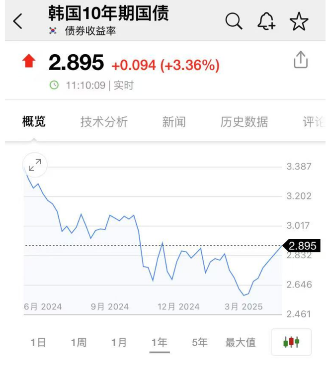 韩国十年期国债收益率上涨