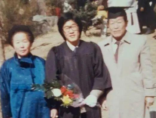 李在明在大学毕业典礼上与父母合照(图:韩国《中央日报》)