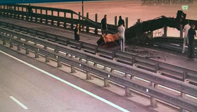 乌国家安全局发布的一张图片显示了克里米亚大桥的损坏情况