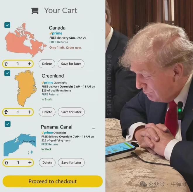 现在,拿下加拿大不用花钱,拿下格陵兰岛花少量钱,拿下巴拿马运河也不想花钱。
