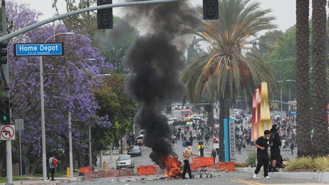 一名目击冲突现场的华人告诉红星新闻,当地时间8日,其在洛杉矶市中心走了一遭,差点以为自己误入了某款“末日生存”游戏的实景体验馆——警车横着飙,玻璃哗啦啦碎,空气里充斥着浓烟和吼声,有人拿着电视机跑,有人举着牌子喊口号,有人举着手机直播砸店,还有人干脆穿着Cosplay装扮来凑热闹……“这场面不夸张地说,像炸了锅的麻辣火锅,什么料都有。”