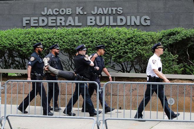 6月9日,在抗议活动中,纽约一名抗议者被捕(图据视觉中国)