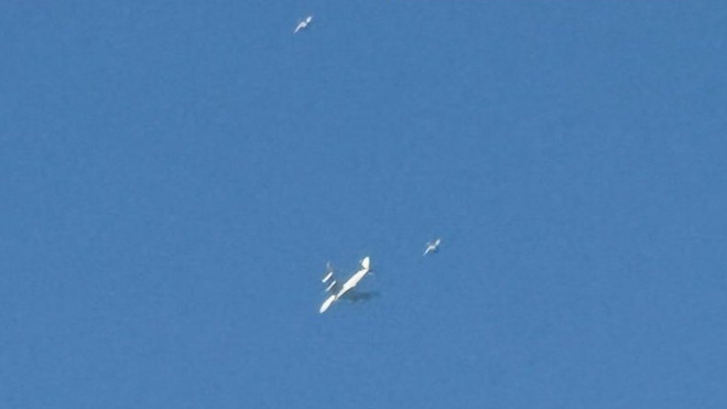 以总理专机由两架战斗机护航(图据央视新闻)