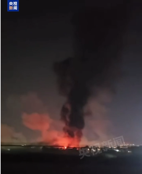 德黑兰的国际机场附近遭袭并发生火灾 图片来源:央视新闻