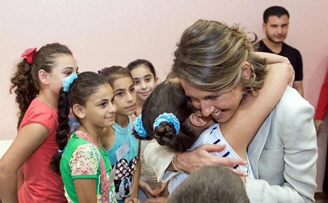 当地时间2017年9月7日,叙利亚塔尔图斯,9月开学季,阿斯玛去探望身亡士兵的子女就读的学校