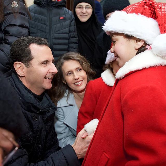 当地时间2016年12月25日,叙利亚塞德纳亚,巴沙尔·阿萨德与妻子阿斯玛在圣诞节期间访问当地修道院
