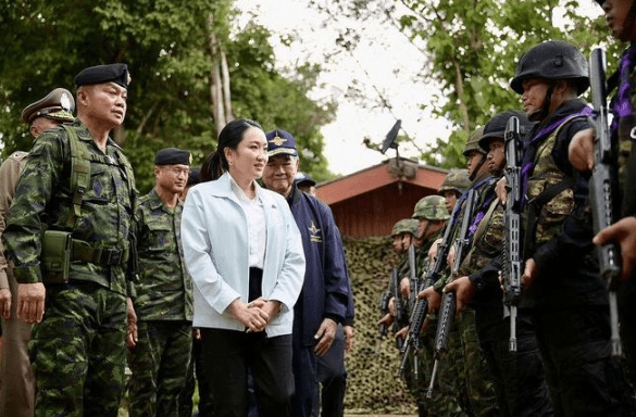 泰国总理佩通坦20日前往该国东部边境地区的乌汶府与泰国陆军第二军区司令本辛会面。据泰国《国民报》报道,此访旨在访问并提高军队士气(如图),视察日前泰柬边境短暂交火后地区安全形势。彭博社称,佩通坦此行是为缓解她在一通被泄露的电话中批评军方所引发的公众不满情绪。会面后,佩通坦表示“非常顺利,现在没有任何问题了”。