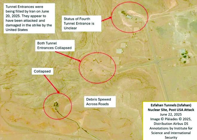 伊斯法罕核设施的多个隧道入口坍塌(图源:空中客车公司)