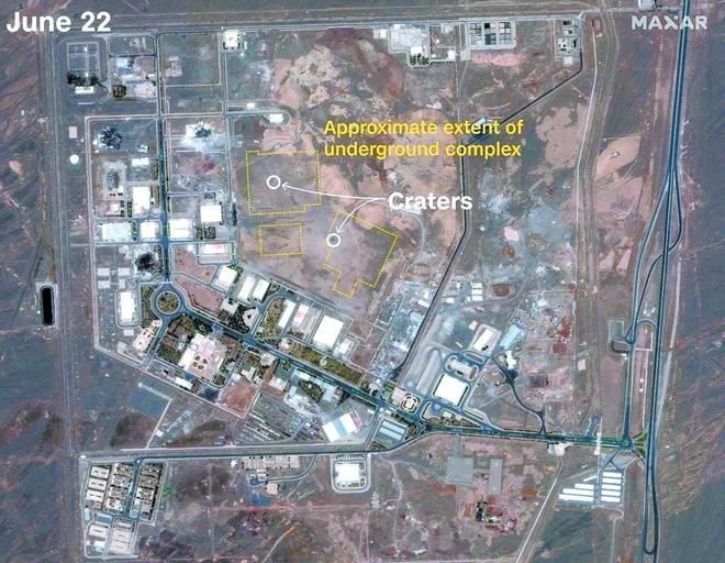 纳坦兹核设施被2枚钻地炸弹命中(图源:Maxar公司)