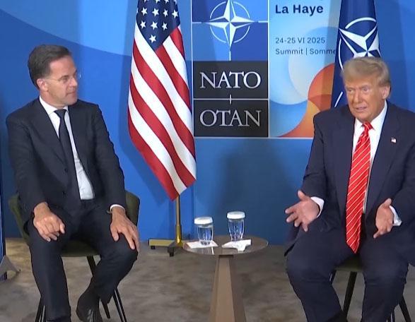 当地时间6月25日,荷兰海牙,北约秘书长吕特(左)与美国总统特朗普会面 图源:美媒