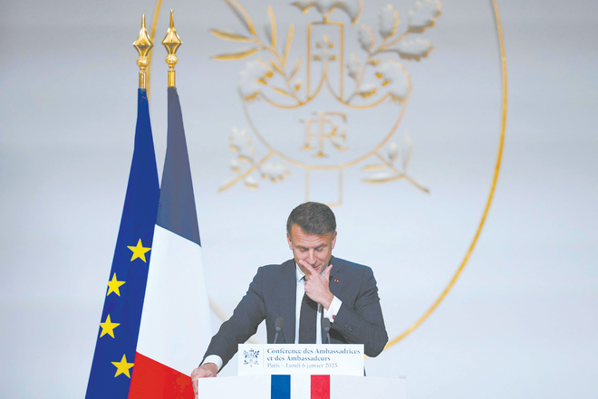 6日,法国总统马克龙在驻外使节年度会议上发表讲话 视觉中国