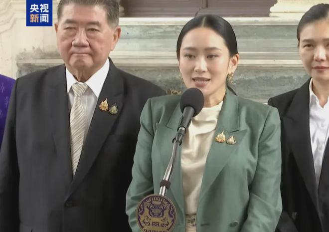 当地时间7月1日,佩通坦在总理府表示接受泰国宪法法院的决定 图:央视新闻